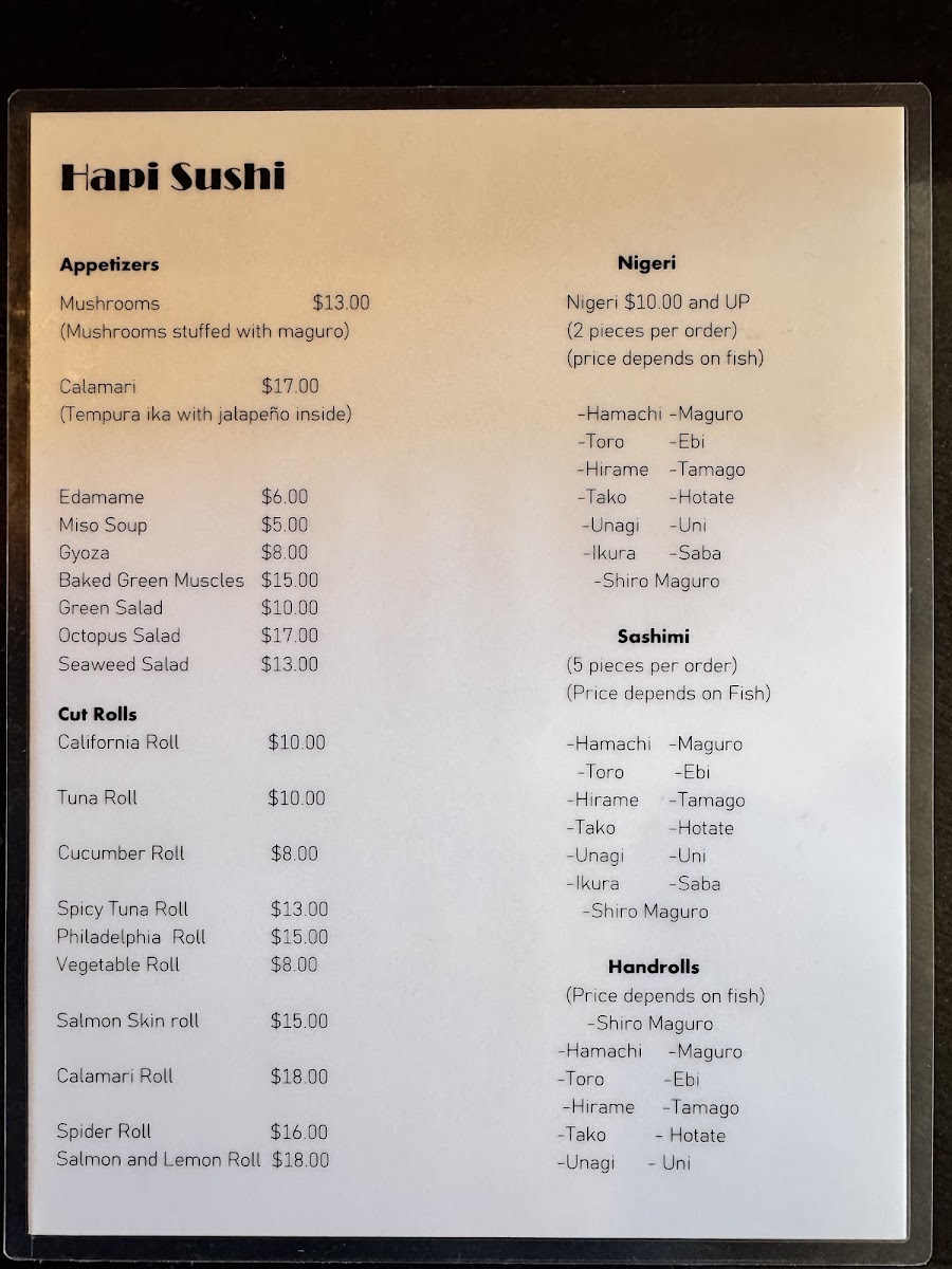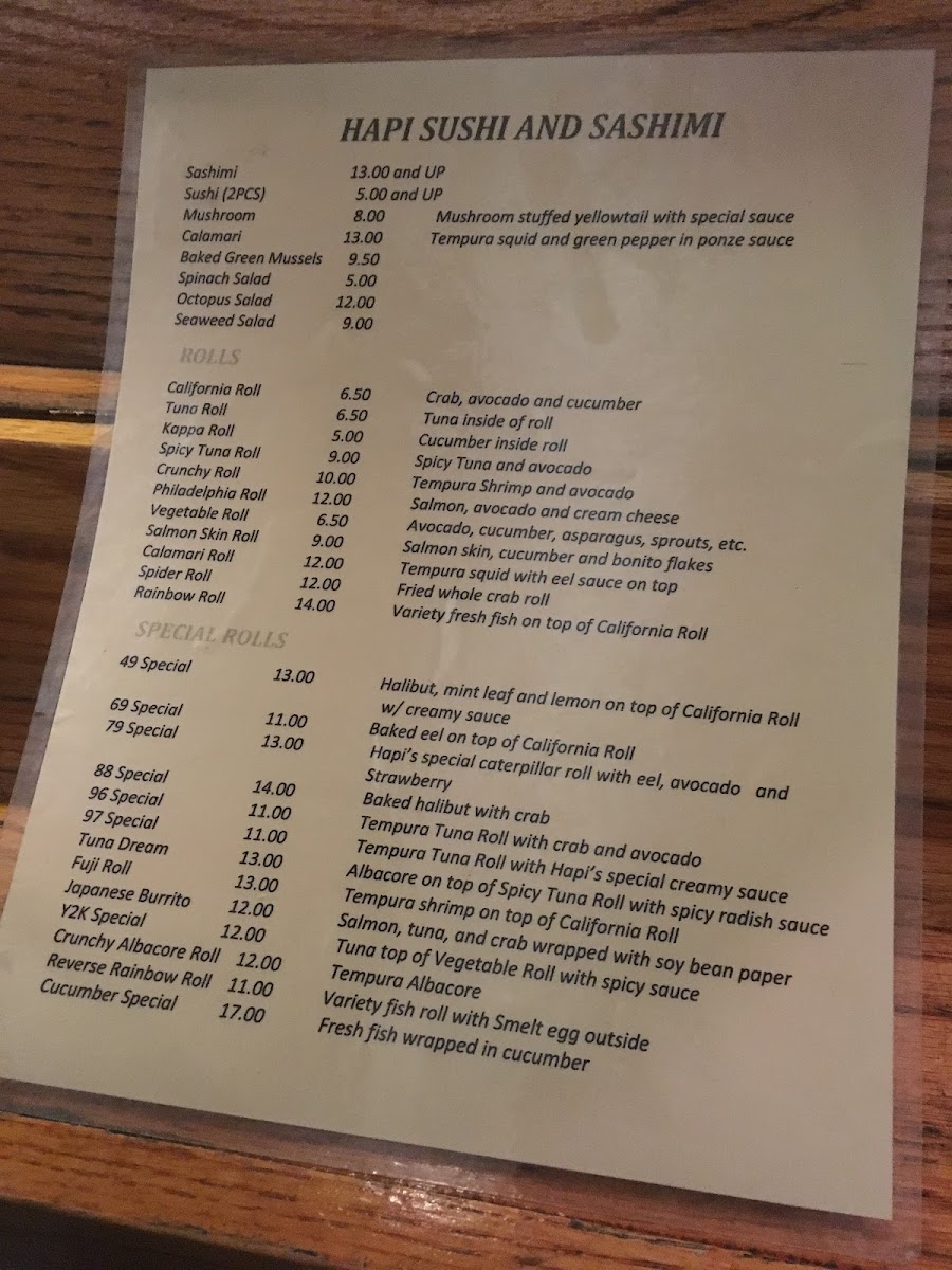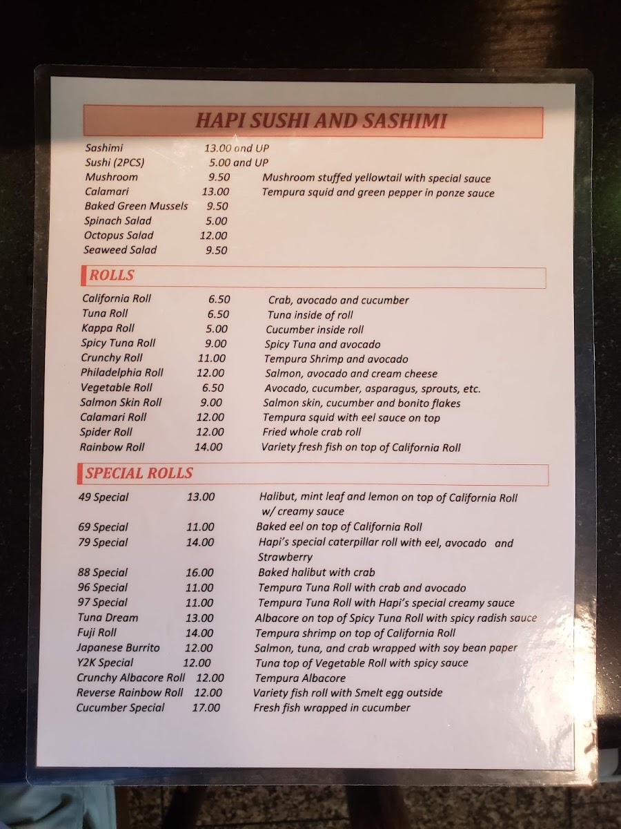 Hapi Sushi of Laguna Beach Menu (2025 Update)